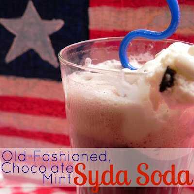 SYDA SODA2 T. Chocolate-Chocolate Mint Syrup2 T. milk or half and half4 oz. seltzer watermint chocolate chip ice creamIn a tall glass, mix together syrup and milk. Slowly add seltzer water, filling the glass 2/3 full. Carefully place one scoop of ice cream on the rim of the glass. Enjoy!