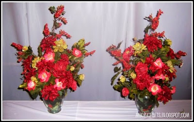 If changes need to be made, it’s very easy to move flowers around or add or remove stems. Silk stems are very forgiving! I added more green and white Gerbera daisies and think the arrangements look much improved!
