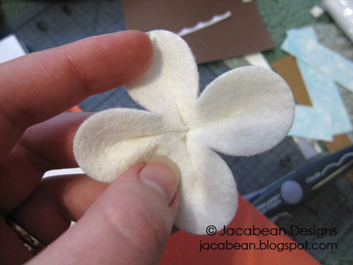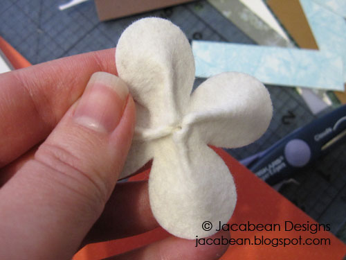 You can see that the back edges meet, instead of the extra fabric getting all clumped up in the middle. The little pleats just created help give the flower a little depth.
