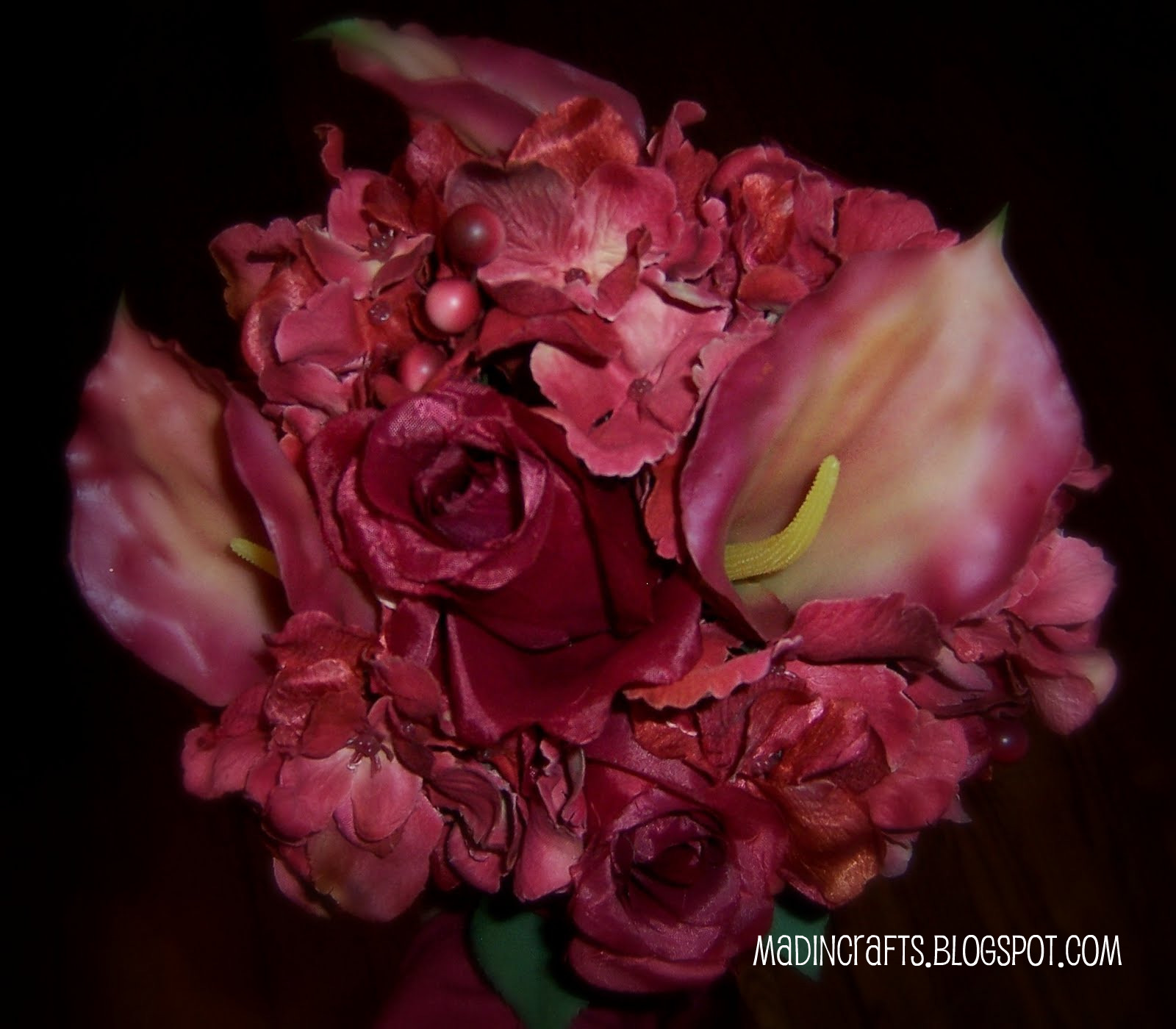 To save money at my wedding, I made my own bouquet and my bridesmaids’ bouquets out of silk flowers I got on sale at Hobby Lobby. Since I prefer simple, monochromatic bouquets anyway, it just seemed to make sense. I used hydrangeas, roses, calla lillies and berries for my bouquet. For the bridesmaids’ bouquets I gathered together hydrangeas, calla lillies, and orchids. The bridesmaids also wore orchids in their hair.